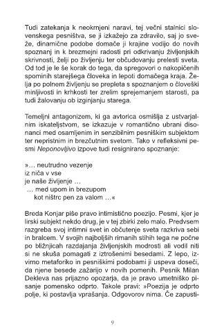 Breda Konjar piše pravo intimistično poezijo. Pesmi, kjer je